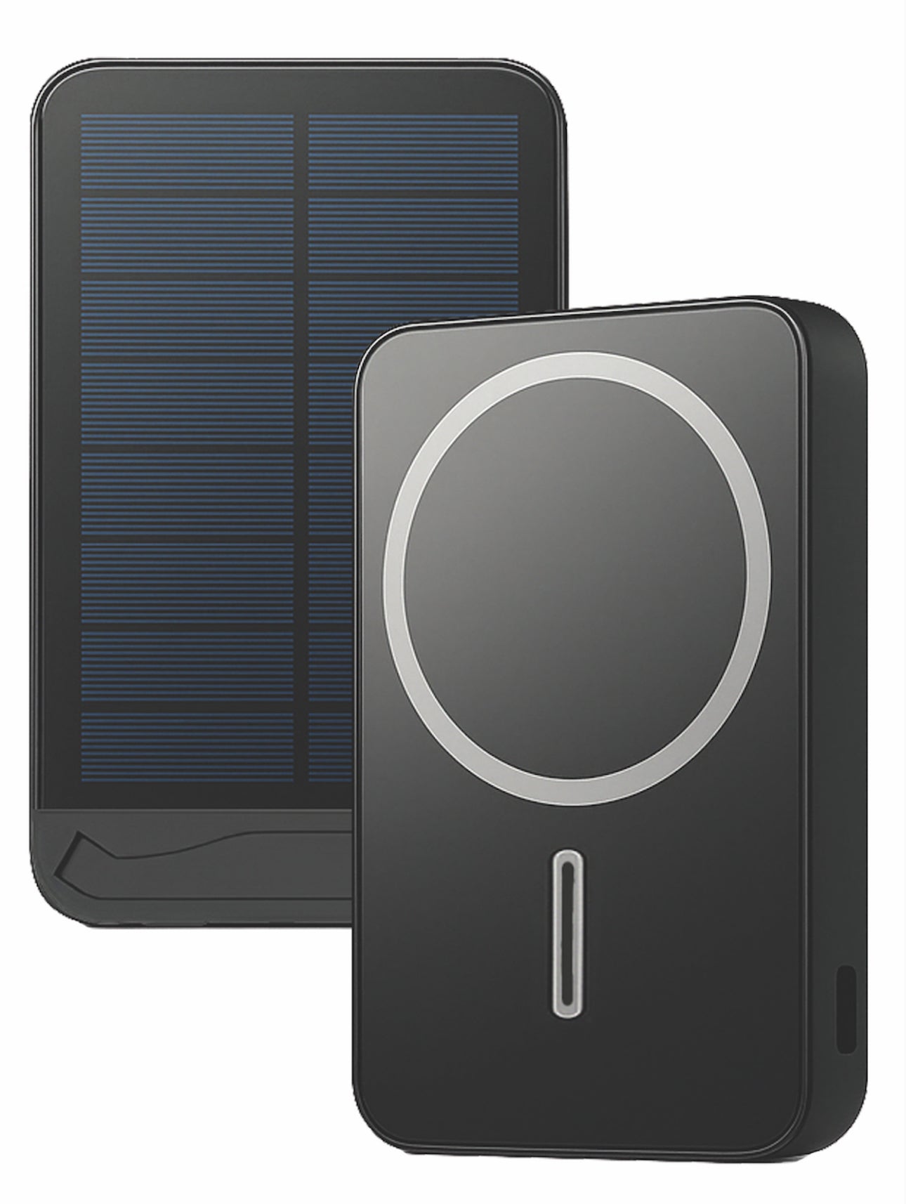 It magnetically snaps to your phone. Charges with sunlight or power. No wires. No stress. Just 100% independence in your pocket.